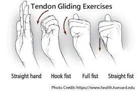 7. ออกกำลังกายเพื่อเพิ่มการเคลื่อนไหวของเส้นเอ็นนิ้วมือ (Tendon Gliding Exercise) ช่วยรักษาและฟื้นฟูมือ โดยทำท่าละ 10 ครั้ง แต่ละท่าค้างไว้ 5 วินาที เช้า – เย็น