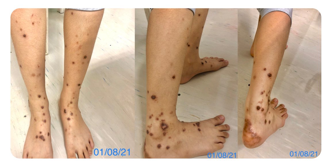 ช่วงสัปดาห์ที่ผ่านมา บริเวณข้อเท้าข้างขวาด้านนอกมีอาการคันมากขึ้นและพบผื่นตุ่มใหม่ขึ้นหนึ่งจุด แต่บริเวณอื่นๆผื่นตุ่มนูนยุบลงชัดเจน ทิ้งรอยดำคล้ำ และไม่มีอาการคัน คนไข้ยังคงมีอาการเหนื่อยง่าย ทานอาหารได้ปกติ เข้านอนหลังเวลา 23:00น. นอนหลับสนิท การขับถ่ายปกติ