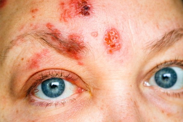 3 เดือนก่อน ผู้ป่วยมีกลุ่มของตุ่มน้ำขึ้นบริเวณศีรษะและใบหน้าซีกขวาพร้อมด้วยอาการปวดแสบปวดร้อนมาก