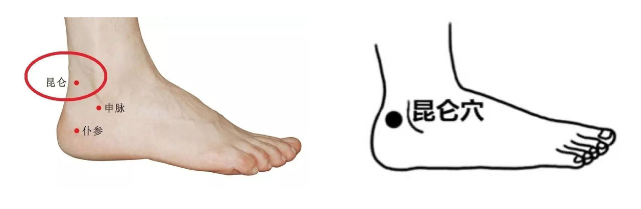 ตำแหน่ง:จุดนี้อยู่ด้านนอกข้อเท้า อยู่ในร่องระหว่างด้านหลังตาตุ่มด้านนอกกับเอ็นร้อยหวาย