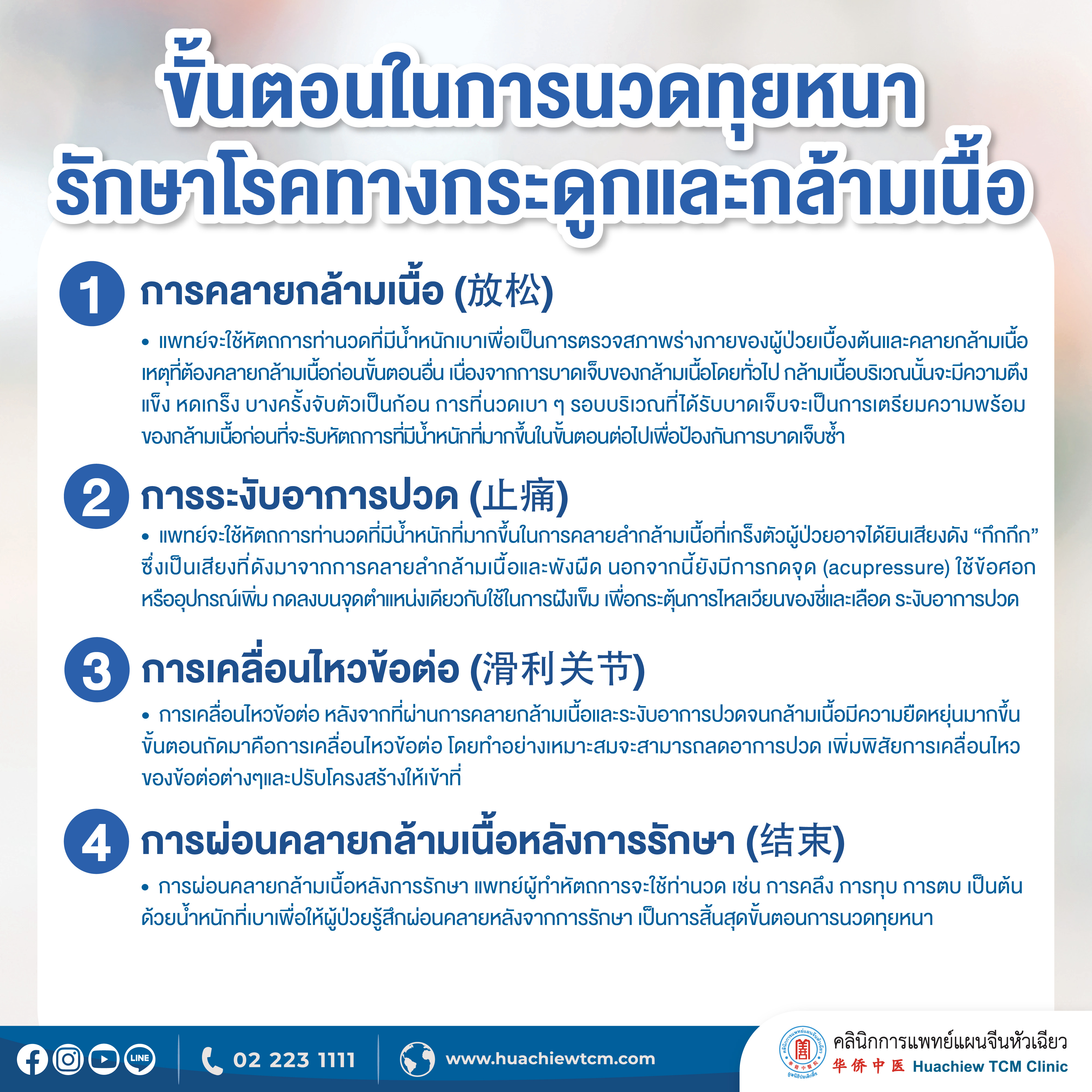 ขั้นตอนในการนวดทุยหนารักษาโรคทางกระดูกและกล้ามเนื้อ