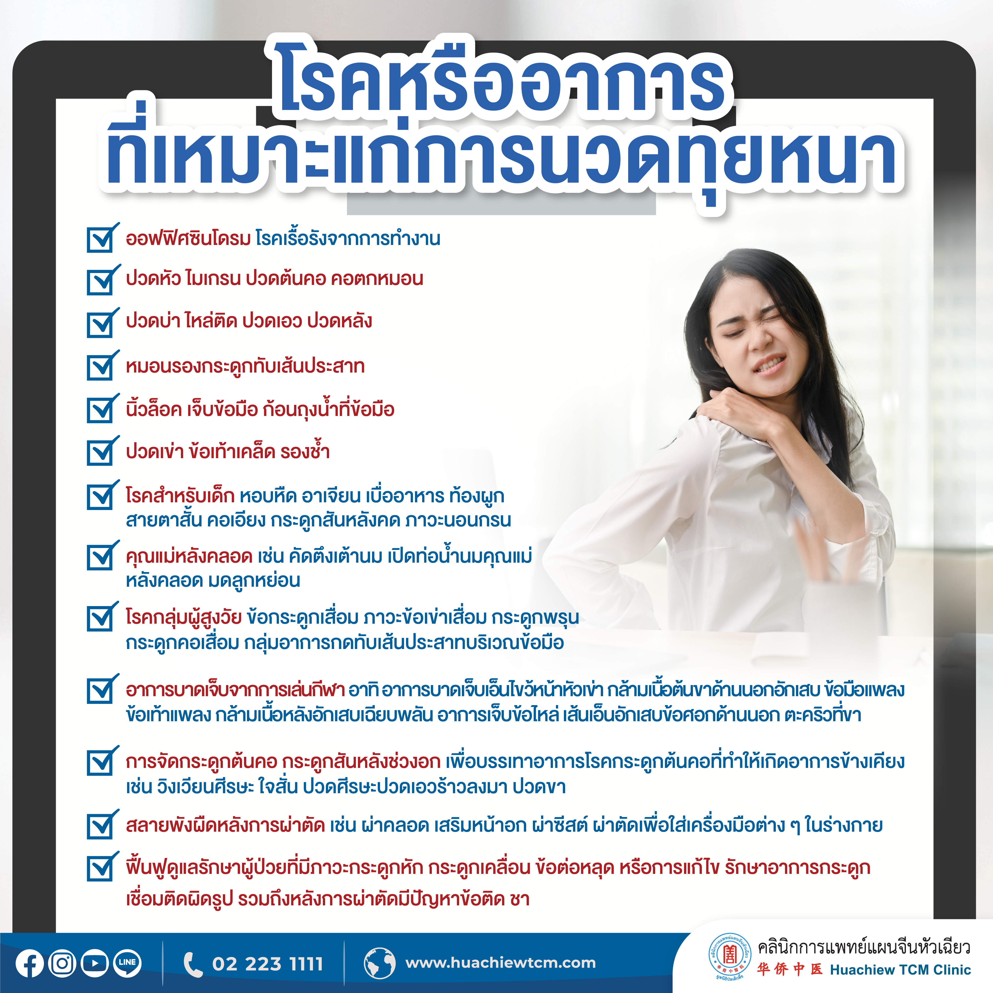 โรคหรืออาการที่เหมาะแก่การนวดทุยหนา ได้แก่