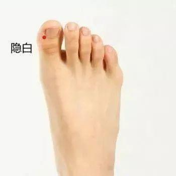 จุดอินไป๋隐白(SP1)อยู่บริเวณมุมขอบเล็บหัวแม่เท้าด้านใน