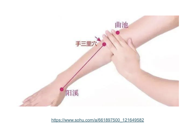 2.จุดโส่วซานหลี่ 手三里 (Shou san li, LI10)