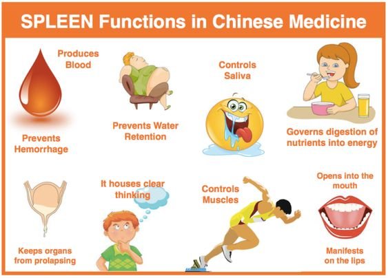 ม้ามควบคุมการย่อยและดูดซึมอาหารได้สารอาหารซึ่งเป็นสิ่งจำเป็นพื้นฐานในการสร้างเลือด ถ้าม้ามอ่อนแอ การดูดซึมสารอาหารจะลดลง ทำให้การสร้างเลือดลดลง เกิดอาการของเลือดพร่อง มือชา วิงเวียน ตาลาย หน้าซีด ปากซีด ลิ้นซีด