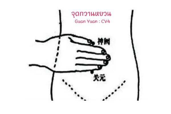 รมยาจุดกวานหยวนเป็นประจำ วันละประมาณ 10-15 นาที หรือ รมยาจนผิวเริ่มเปลี่ยนเป็นสีแดงระเรื่อ หรือใช้นิ้วหัวแม่มือนวดคลึงเบาๆ บริเวณจุดกวานหยวนวันละ 3-5 นาที