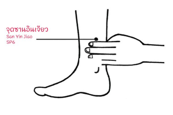 ใช้นิ้วหัวแม่มือนวดคลึงเบาๆ บริเวณจุดซานอินเจียวทุกวัน วันละ 3-5 นาที