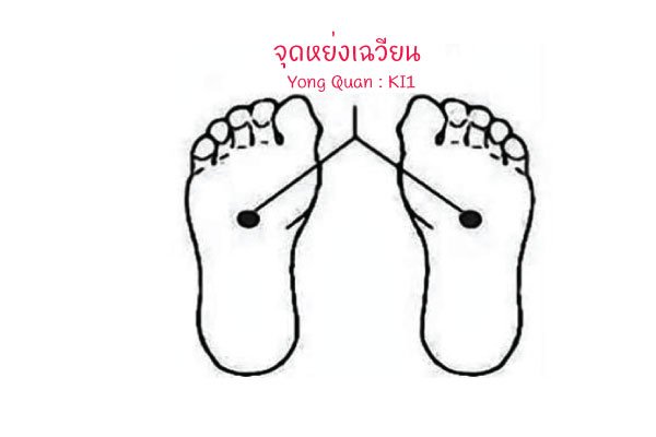 ใช้นิ้วหัวแม่มือนวดคลึงเบาๆ บริเวณจุดหย่งเฉวียนทุกวัน วันละ 3-5 นาที