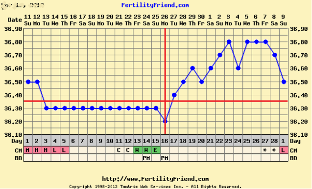 หากBBTสูงขึ้นติดต่อกัน 16 วันขึ้นไปและไม่ตกลงมา แสดงว่าอาจจะมีการตั้งครรภ์เกิดขึ้น