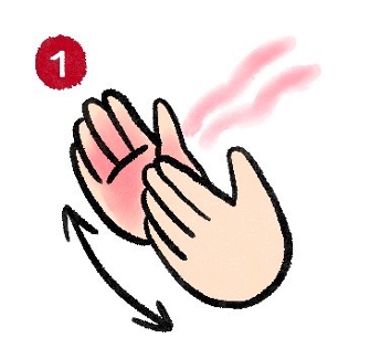 1) ถูฝ่ามือจนร้อน (热搓手): ใช้ฝ่ามือทั้งสองข้างถูไปมาจนเกิดความร้อน หลังจากนั้นให้ถูบริเวณหลังมือร่วมด้วย สามารถออกแรงถูหนักและเร็วเพื่อให้เกิดความร้อนเพียงพอ ประมาน 3 นาที