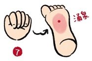 3)      จุดหย่งเฉฺวียน(KI1 涌泉)