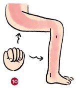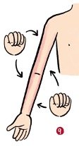 9) ตีหรือเคาะแขนด้านในและด้านนอก(拍打,叩击上肢内侧与外侧): ใช้ฝ่ามือตีหรือกำปั้นเคาะไปบริเวณแขนด้านในและด้านนอกไปกลับ 8-12 ครั้ง