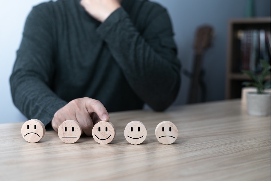 การควบคุมอารมณ์ อารมณ์ที่แปรปรวนจะส่งผลกระทบให้อวัยวะในร่างกายทำงานผิดปกติ เช่นอารมณ์โกรธจะส่งผลต่อตับ (肝) ทำให้ชี่หรือเส้นลมปราณติดขัด ทำให้เกิดเลือดคั่งที่บริเวณใบหน้า ใบหน้าจะมีสีคล้ำกว่าปกติ ใต้ตาคล้ำ หรือเกิดเป็นฝ้า (黄褐斑) อารมณ์เศร้าหรือวิตกกังวลจะทำลายเส้นลมปราณปอด (肺) ทำให้การแผ่กระจายของสารจำเป็น เลือดและชี่ ลดลง ส่งผลให้ผิวหนังและเส้นขนขาดความชุ่มชื้น เหี่ยวแห้ง แห้งกร้าน แตกเป็นขุย ดังนั้นการมีอารณ์และจิตใจที่แจ่มใจจะส่งผลให้ชี่และเลือดไหลเวียนได้ดีมากขึ้น ทำให้ผิวพรรณขาวกระจ่างใสเปล่งปลั่ง ใบหน้ามีสีเลือดฝาด ผิวพรรณชุ่มชื้นไม่แห้งกร้าน สีผิวสม่ำเสมอมีออร่า