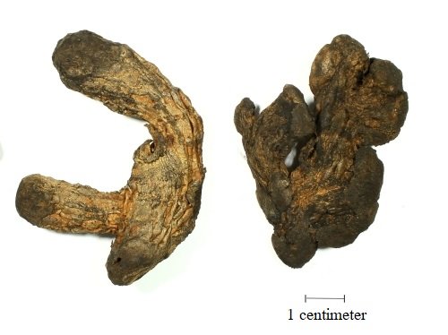 Flattened piece with finger-like branches and distinct annulated-nodes. Branched parts usually with remains of scale leaves. Odor, aromatic and characteristic; taste, pungent.