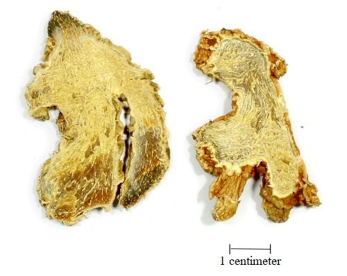 2. Paojiang: Taste bitter, pungent and warm, its nature and taste are less dry and less pungent than Ganjiangpian, therefore it is not as potent in internal warming effect as Ganjiangpian but has longer duration and milder effect. It is effective for pain, diarrhea, warm zhongjiao and stop bleeding.