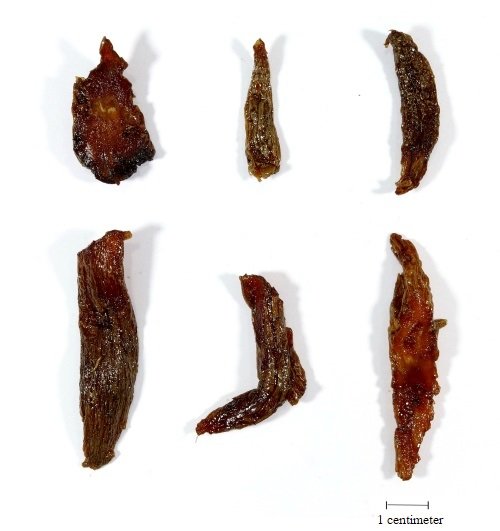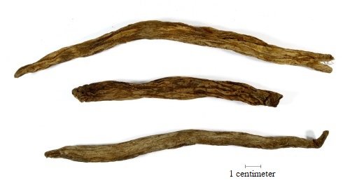Manshengbaibu (S. japonica): Two ends slightly thinned. External mostly with irregular longitudinal furrows and transverse wrinkles.