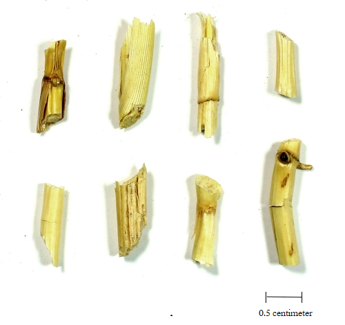 Long cylindrical, external yellowish-white or pale yellow, slightly