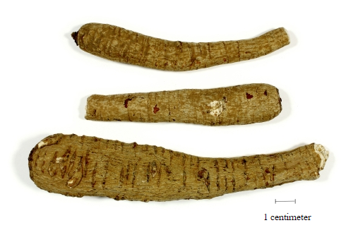 Eliminate foreign matters. Sort the root according to size, wash clean, cover to soften, cut into thick slices, and dry.