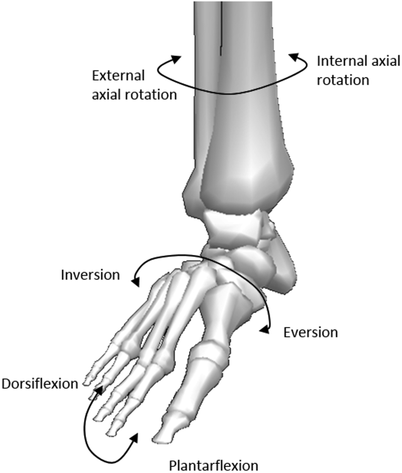 การเคลื่อนไหวของข้อเท้าในระนาบต่าง ๆ มีดังนี้