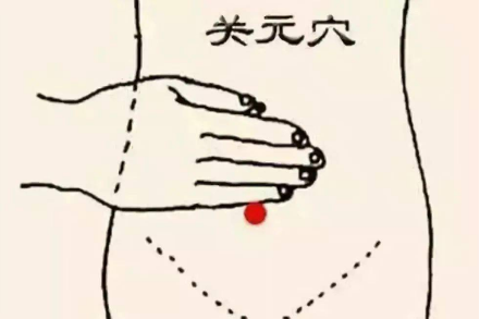 ลูบจุดชี่ไห่และจุดกวนหยวนเบาๆด้วยฝ่ามือให้พอรู้สึกอุ่นประมาณ 1 นาที โดยจุดชี่ไห่จะอยู่บริเวณใต้สะดือประมาณ 2 นิ้วมือจุดกวนหยวนจะอยู่บริเวณใต้สะดือประมาณ 4 นิ้วมือ