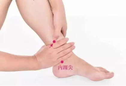 กดคลึงจุดจู๋ซานหลี่และจุดซานอินเจียวให้รู้สึกหน่วง แน่นหรือชาประมาณ 1 นาที โดยจุดจู๋ซานหลี่จะอยู่บริเวณขอบกระดูกลูกสะบ้าด้านนอกเยื้องลงล่าง วัดจากจุดนั้นลงมาประมาณ 4 นิ้วมือ จุดซานอินเจียวจะอยู่บริเวณยอดนูนของตาตุ่มด้านในขึ้นมาประมาณ 4 นิ้วมือ