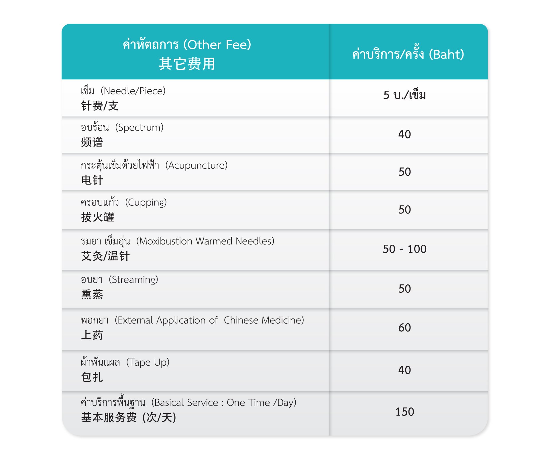 The cost of Chinese herbal medicine depends on the type, form, and quantity of herbs prescribed for each individual patient. The estimated cost per prescription is approximately 800–1,200+ THB, and the medicine typically lasts for 1 to 2 weeks, depending on the dosage specified by the attending Chinese medicine doctor.