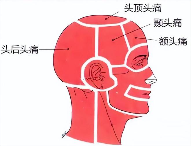 การแพทย์แผนจีนมองว่าศีรษะเป็นจุดศูนย์รวมพลังหยางในร่างกาย และตำแหน่งการปวดศีรษะสามารถบ่งชี้ถึงความเกี่ยวข้องของเส้นลมปราณที่แตกต่างกัน เช่น ปวดศีรษะบริเวณท้ายทอยและปวดร้าวลงมาบริเวณต้นคอ จัดเป็นอาการปวดศีรษะตามแนวเส้นลมปราณไท่หยาง(太阳经)ปวดศีรษะบริเวณหน้าผากตลอดจนตามแนวคิ้ว จัดเป็นอาการปวดศีรษะตามแนวเส้นลมปราณหยางหมิง(阳明经)ปวดศีรษะบริเวณด้านข้างและปวดร้าวลงมาบริเวณหู จัดเป็นอาการปวดศีรษะตามแนวเส้นลมปราณเส้าหยาง (少阳经) ปวดศีรษะบริเวณกลางกระหม่อม จัดเป็นอาการปวดศีรษะตามแนวเส้นลมปราณ เจวี๋ยวอิน(厥阴经)