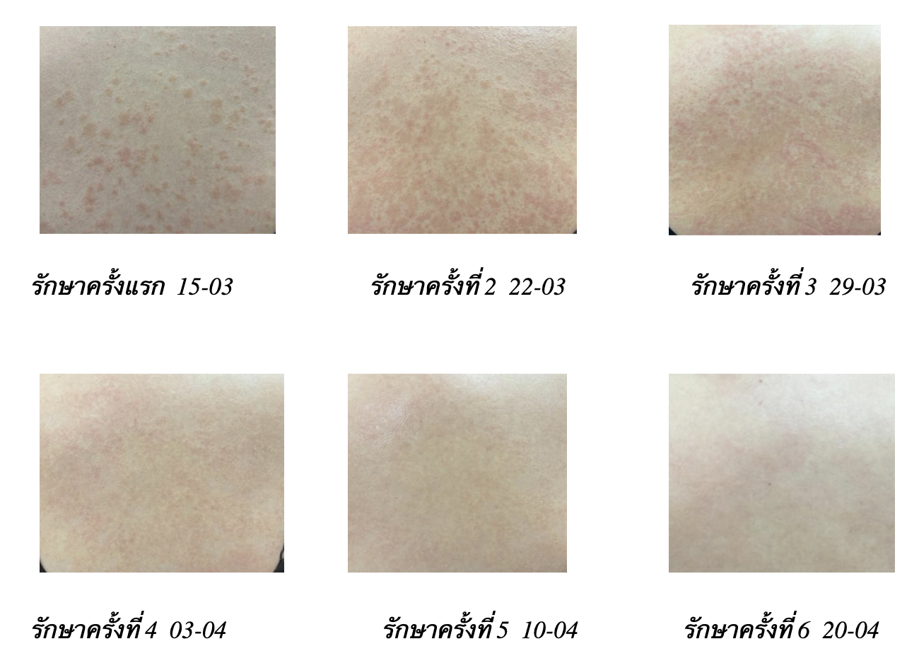 เมื่อได้รับการรักษาด้วยยาสมุนไพรจีน พบว่าแม้จะยังมีผื่นขึ้นใหม่อยู่บ้าง แต่ผื่นเดิมบางส่วนเริ่มจางลง และอาการคันลดน้อยลงตามลำดับ การแพทย์แผนจีนให้ความสำคัญกับการปรับสมดุลภายในร่างกาย จึงเน้นทั้งการใช้ยาสมุนไพรควบคู่กับการปรับพฤติกรรมและการดูแลตนเองอย่างเหมาะสม