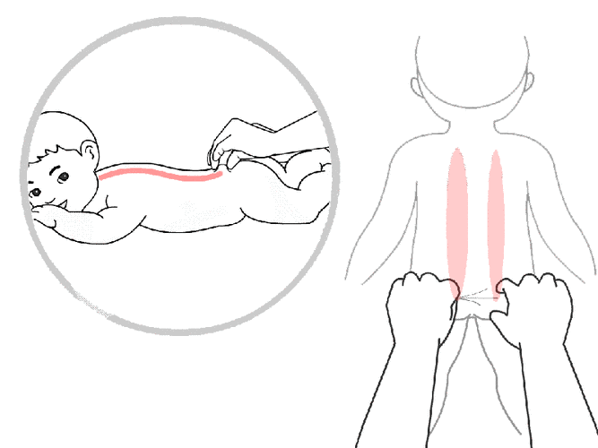 วิธีการ : ใช้นิ้วโป้งและนิ้วชี้หยิบผิวหนังสองข้างของแนวกระดูกสันหลังจากก้นกบ (กระดูกก้น) ขึ้นไปถึงฐานคอ (กระดูกคอข้อที่ 7) ทำซ้ำประมาณ 7 รอบ