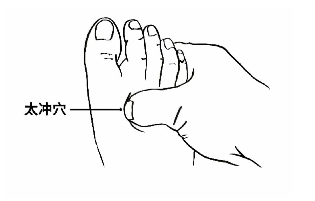 ตำแหน่ง อยู่หลังเท้า ตรงร่องหน้ารอยต่อระหว่างกระดูกฝ่าเท้า ที่ 1 และ 2 จุดนี้ช่วยระบายชี่ตับและกระตุ้นการไหลเวียนของชี่ ช่วยคลายความวิตกกังวลได้ นอกจากนี้ยังช่วยลดไฟตับ ทำให้นอนหลับได้ลึกขึ้น