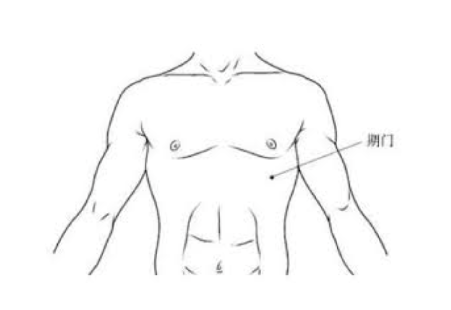 ตำแหน่ง อยู่บริเวณหน้าอก ตรงช่องซี่โครงที่ 6 ห่างจากแนวกึ่งกลางลำตัวตามแนวระนาบ 4 ชุ่น จุดนี้ช่วยบรรเทาอาการปวดแน่นหน้าอก และสีข้างที่เกิดจากชี่ตับอุดกั้นได้