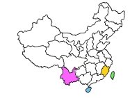 มณฑลไห่หนาน หยุนหนาน ฝูเจี้ยน และไต้หวัน