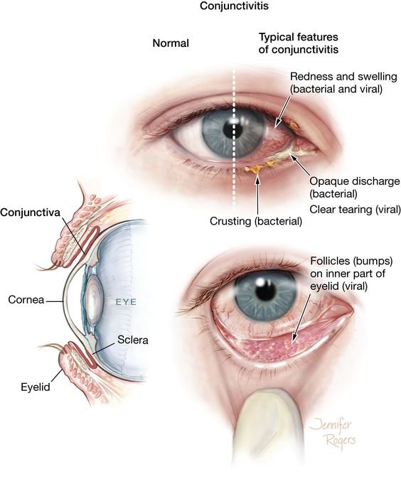 When blood vessels in the conjunctiva become inflamed, this makes eyes red, itchy, pained, irritated or wet.