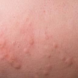 - 虫咬皮炎:好发于小儿的常见皮肤病。本病的主要表现是皮肤出现皮疹,皮疹为纺锤形,水肿性红色丘疹,开始为小粒状丘疹,继而发展为黄豆至花生米大,有时丘疹 中央有水疱,偶尔可见血疱,周围红晕明显,皮疹常成批出现,好发于腰背、四肢,群集或疏散分布,皮疹奇痒,抓破后容易糜烂而 致继发感染。