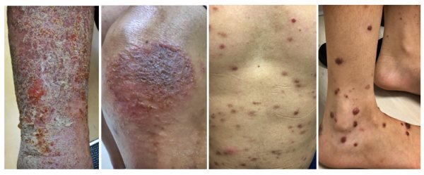 จากลักษณะอาการที่พบ สามารถจำแนกออกเป็นโรคผิวหนัง ได้แก่