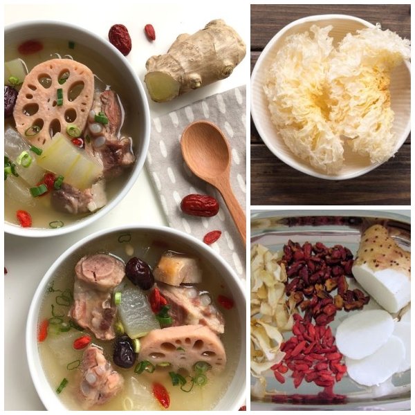 (ใส่ฮ่วยซัว+เก๋ากี้+ขิง+แครอท+เห็ดหูหนูขาว) ช่วยเสริมบำรุงม้ามและปอด ไล่ความชื้น และเสริมสร้างภูมิคุ้มกัน