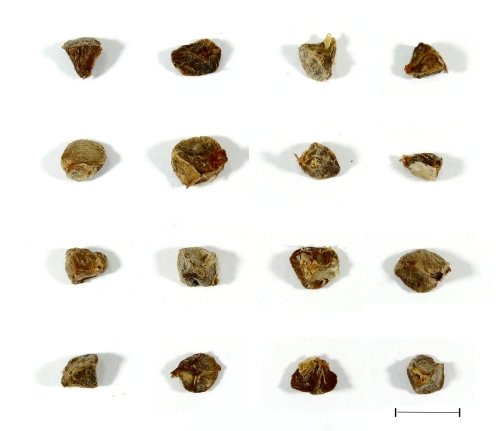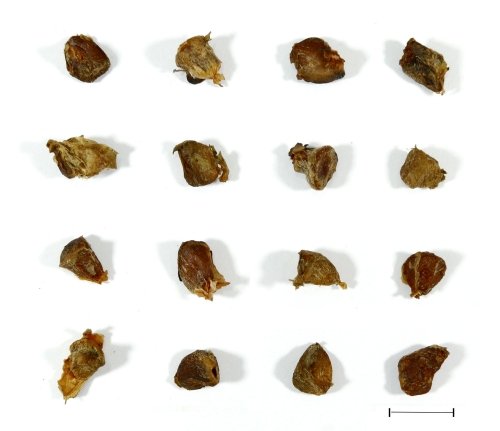 รูปไข่ทรงยาว มี 3 พู มีร่องและสันนูนตามแนวยาว ส่วนฐานมีก้านผลหรือรอยก้านผล ตรงกลางข้างในมีผนังกั้นแบ่งเมล็ดออกเป็นสามกลุ่ม เมล็ดมีเยื่อหุ้มสีขาวอมเทา มีกลิ่นหอมเฉพาะตัว รสเผ็ด ขมเล็กน้อย