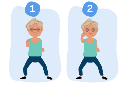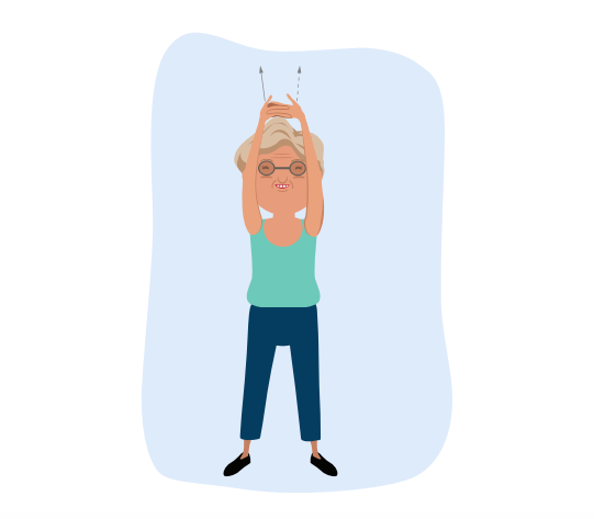 8.2 ยืนให้เท้าชิดกัน เอามือทั้งสองข้างประสานกันไว้ที่ด้านหลัง เขย่งปลายเท้า และพยายามยืดลำตัว ยืดหัวขึ้น พร้อมหายใจเข้า