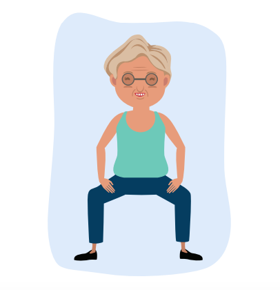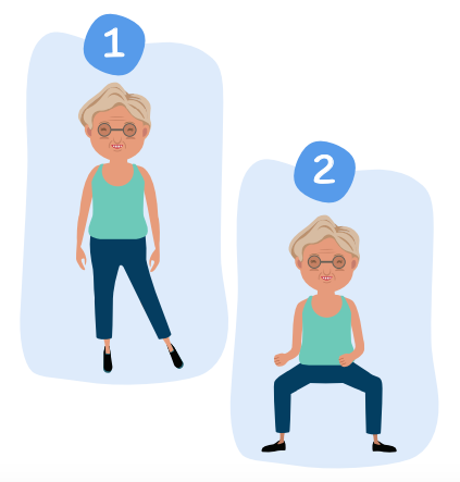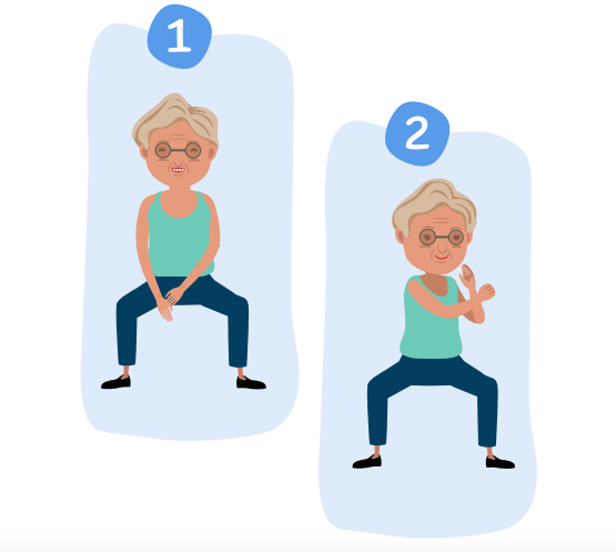 7.1 ยืนในท่าเตรียม ย่อขาลงให้อยู่ในลักษณะเหมือนนั่งอยู่บนม้านั่ง