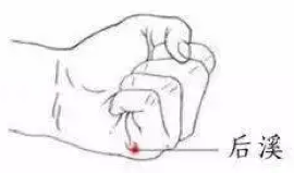 จุดโฮ่วซีใช้บรรเทาอาการตกหมอนที่เกิดบนเส้นลมปราณมือไท่หยาง นั่นคือบริเวณหลังคอค่อนมาด้านข้างห่างจากเส้นกึ่งกลางลำตัว รวมไปถึงมีอาการปวดตึงบริเวณหลังหูและสะบัก วิธีการหาจุดโฮ่วซีคือ ให้กำมือ จุดนี้อยู่ตรงปลายรอยย่นของสันมือตามแนวสีผิวที่ตัดกันของฝ่ามือและหลังมือ