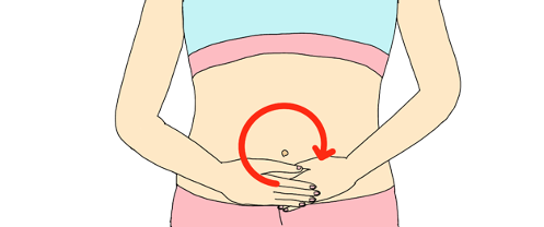 ลูบเบาๆบริเวณหน้าท้องในทิศหมุนตามเข็มนาฬิกาประมาณ 30-40 รอบเพื่อกระตุ้นการทำงานของลำไส้