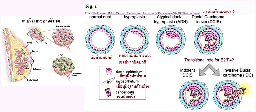 | ER(-)PR(+) | อัตราการกลับมาเป็นซ้ำและการแพร่กระจายในระยะ 5 ปี เท่ากับ 50 % | อัตราการกลับมาเป็นซ้ำและการแพร่กระจายในระยะ 5 ปี เท่ากับ 42.9 % |