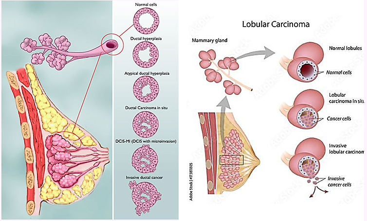 มะเร็งเต้านม เกิดเนื่องจากการแบ่งตัวที่ผิดปกติของเซลล์ท่อน้ำนมหรือต่อมน้ำนม ทำให้เกิดเป็นก้อนเนื้องอก โดยหากไม่ได้รับการรักษามะเร็งจะโตขึ้นและกระจายไปที่ต่อมน้ำเหลืองบริเวณรักแร้ ก่อนที่จะกระจายไปอวัยวะอื่น ๆ เช่น ปอด ตับ สมอง กระดูก เป็นต้น