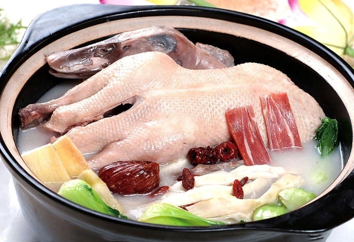 วัตถุดิบ : เนื้อเป็ด (ใช้เป็ดทั้งตัวหรือเนื้อเป็ดก็ได้) 600 กรัม พุทราจีนแดง 4 ลูก ตังกุย 10 กรัม เก๋ากี้ 10 เม็ด น้ำสะอาด 1.4 ลิตร