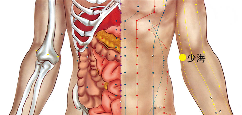 ![]() | เส้าไห่ ShaoHai 少海 เส้า แปลว่า อ่อนวัย ไห่ แปลว่า ทะเล อยู่บริเวณปลายด้านในสุดของรอยพับข้อศอก |