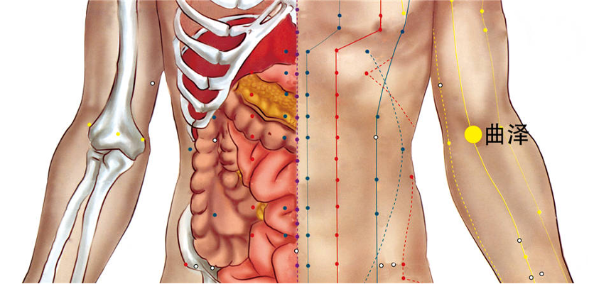 ![]() | ชวีเจ๋อ QuZe 曲泽 ชวี แปลว่า โค้ง เจ๋อ แปลว่า บึง จุดนี้อยู่บริเวณแอ่งรอยพับข้อศอก |