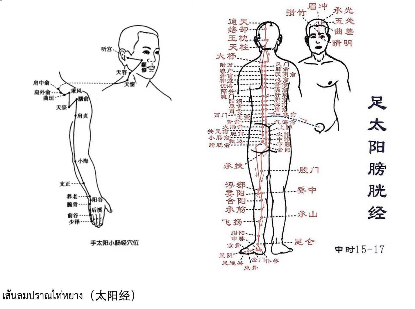 เซิ่นซู(BL23, 肾俞): บนหลัง ระดับขอบล่างปุ่มกระดูกสันหลังเอวที่ 2 ข้างแนวกึ่งกลางตัว 1.5 ชุ่น