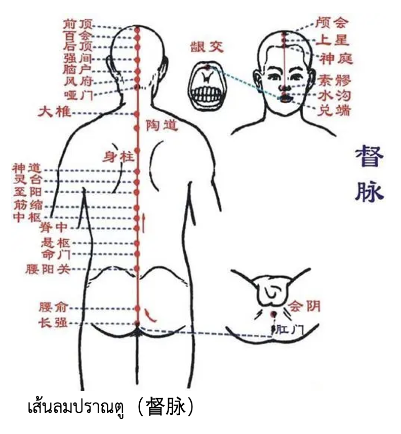 ไป่หุ้ย(GV20, 百会): อยู่กึ่งกลางศีรษะ เมื่อลูบเบา ๆ จะรู้สึกว่าเป็นแอ่งบุ๋ม