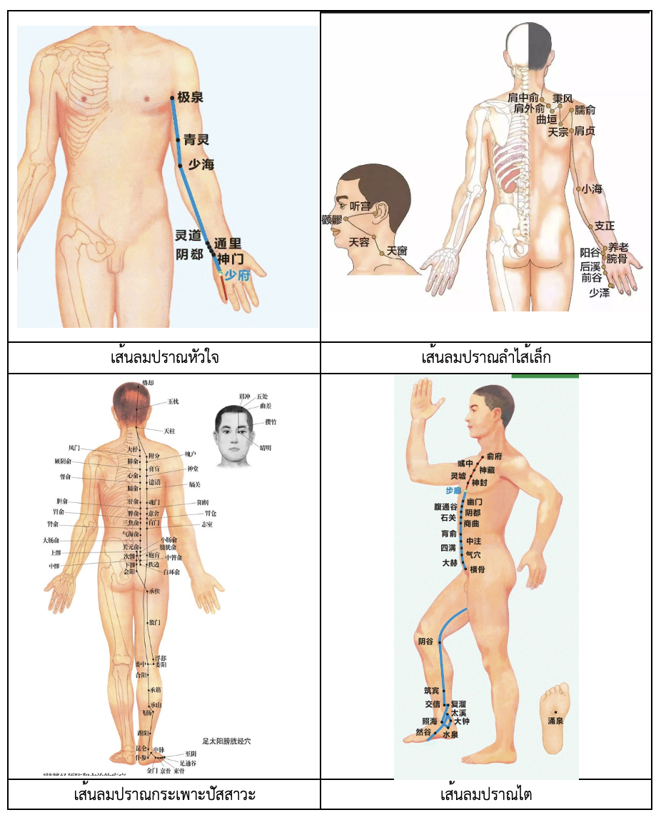 โดยท่า 4 ท่าเต๋าอิ่นจะเป็นท่าที่ช่วยกระตุ้นเส้นลมปราณหัวใจ ลำไส้เล็ก กระเพาะปัสสาวะและเส้นลมปราณไต