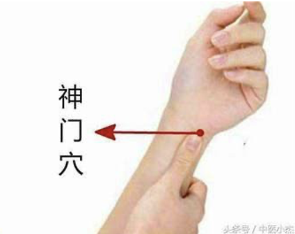 神门 เสินเหมิน (Shenmem, HT8) ตำแหน่งอยู่ที่ข้อมือด้านใน ที่เส้นข้อมือด้านใน
